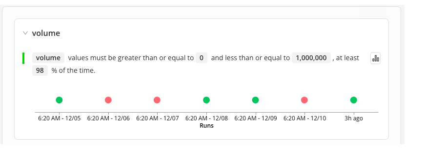 And you can make those changes with confidence that you won’t disrupt your view of your historical results: GX Cloud captures every change to an Expectation within your test result’s historical charts and visualizations, so you can see your Validation Results in context with your evolving understanding of your data.